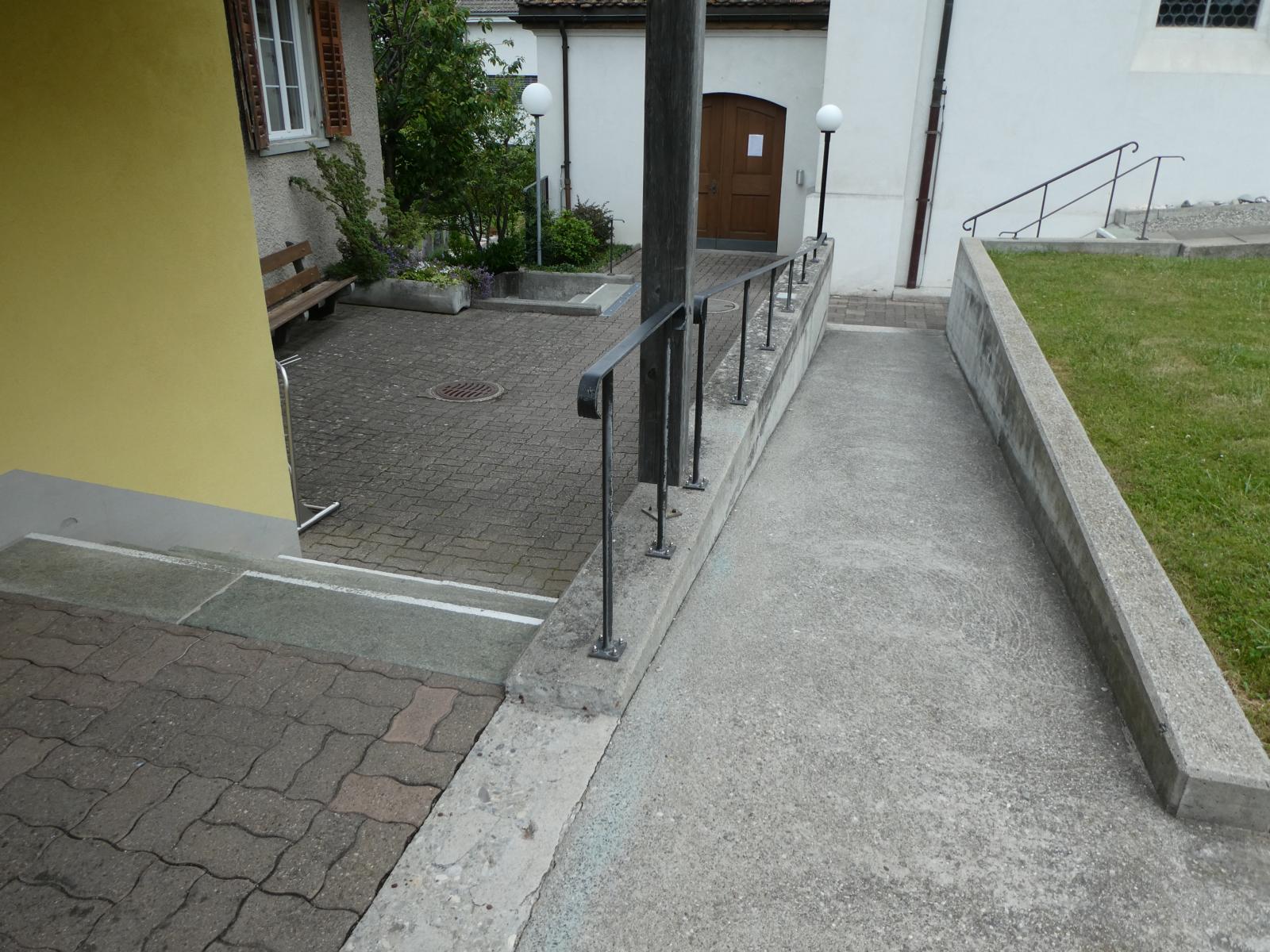 Der Zugang zum grossen und kleinen Saal, Küche und zum Jugendraum ist rollstuhlgängig.