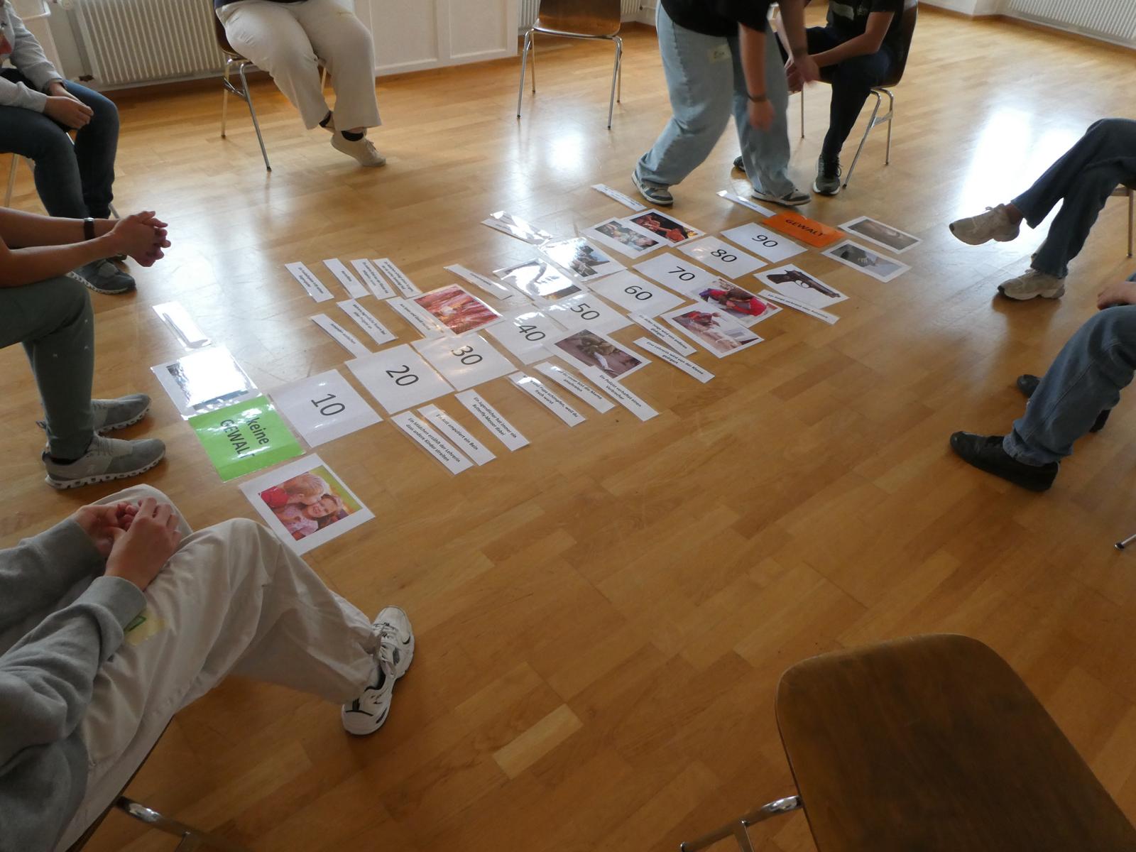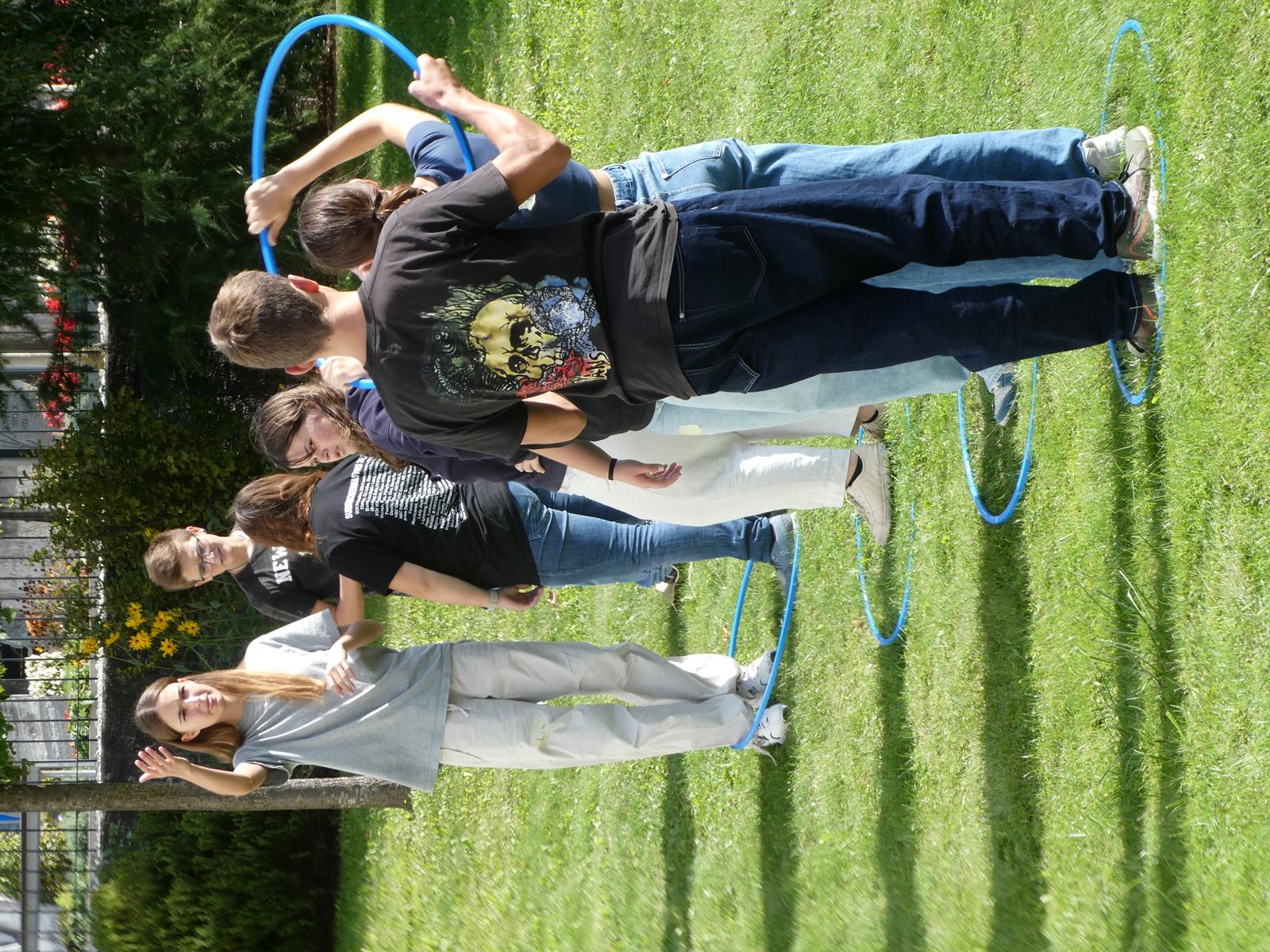 An diesem Projekttag wurden die Jugendlichen darauf sensibilisiert, was eine gute Gemeinschaft ausmacht. Die Fotos zeigen einerseits, wie die Jugendlichen lernen auf Menschen mit einer Beeinträchtigung Rücksicht zu nehmen (blind, gehbehindert usw.) und andererseits lernten sie Nähe zuzulassen, ohne übergriffig zu sein.