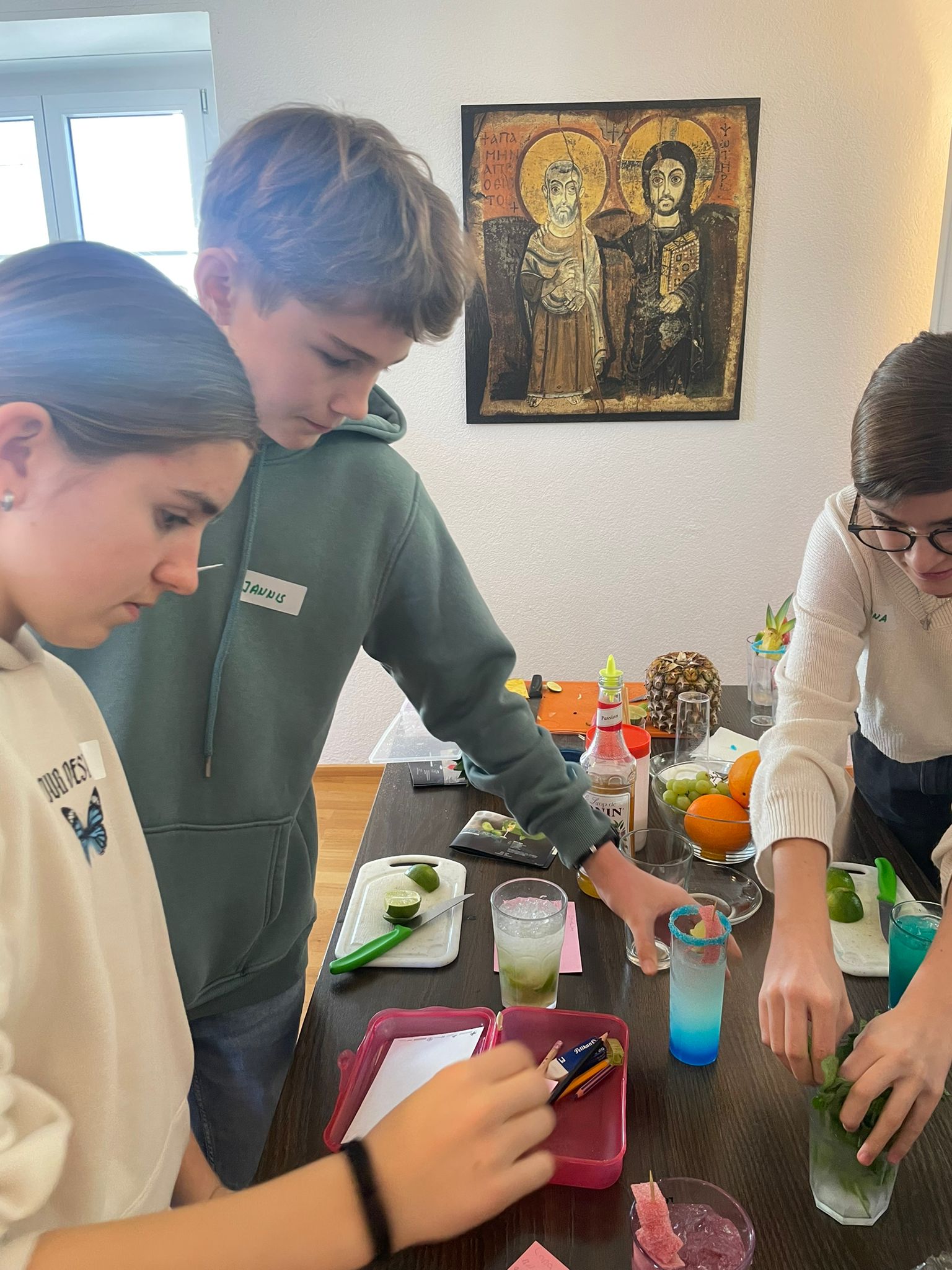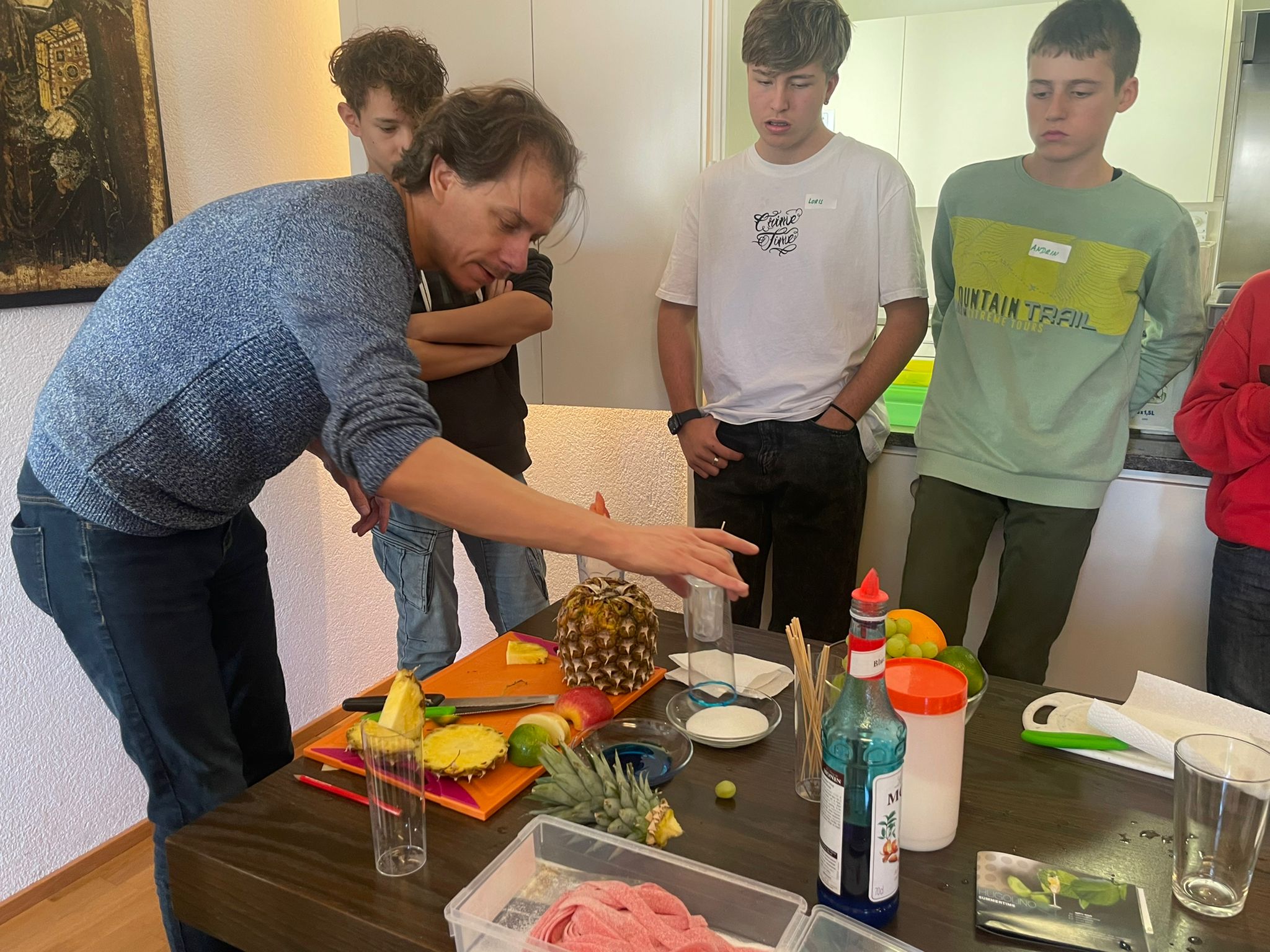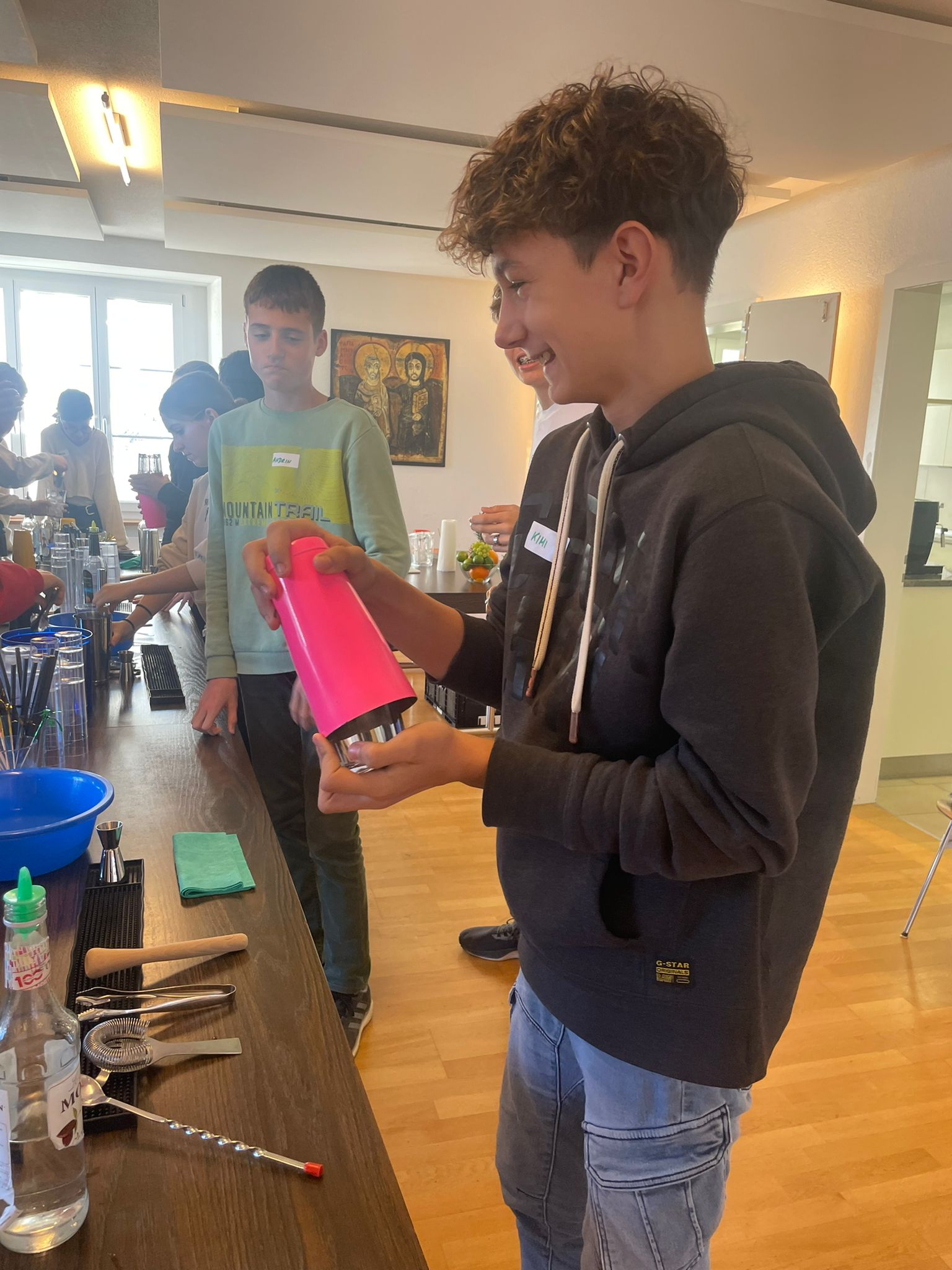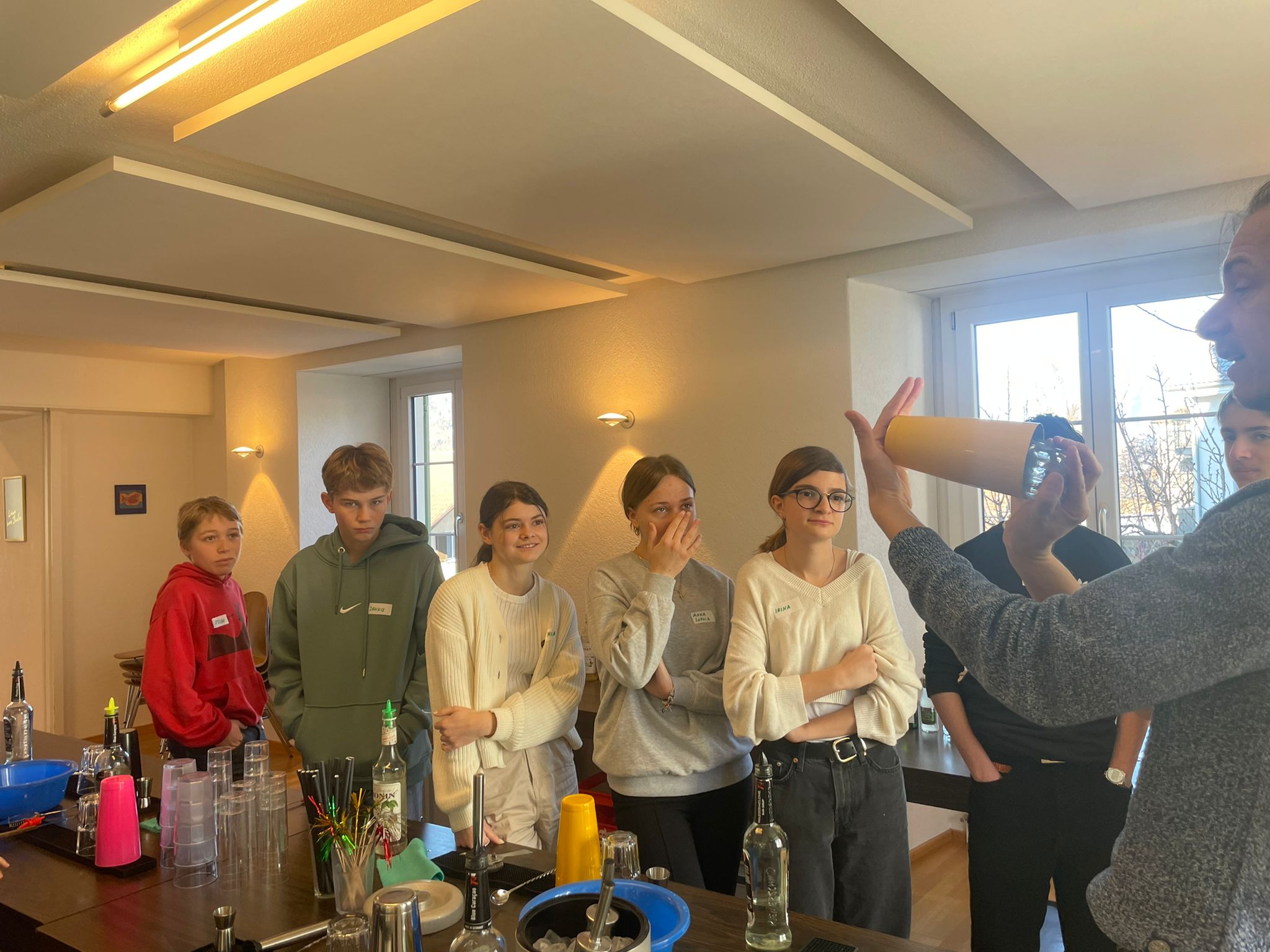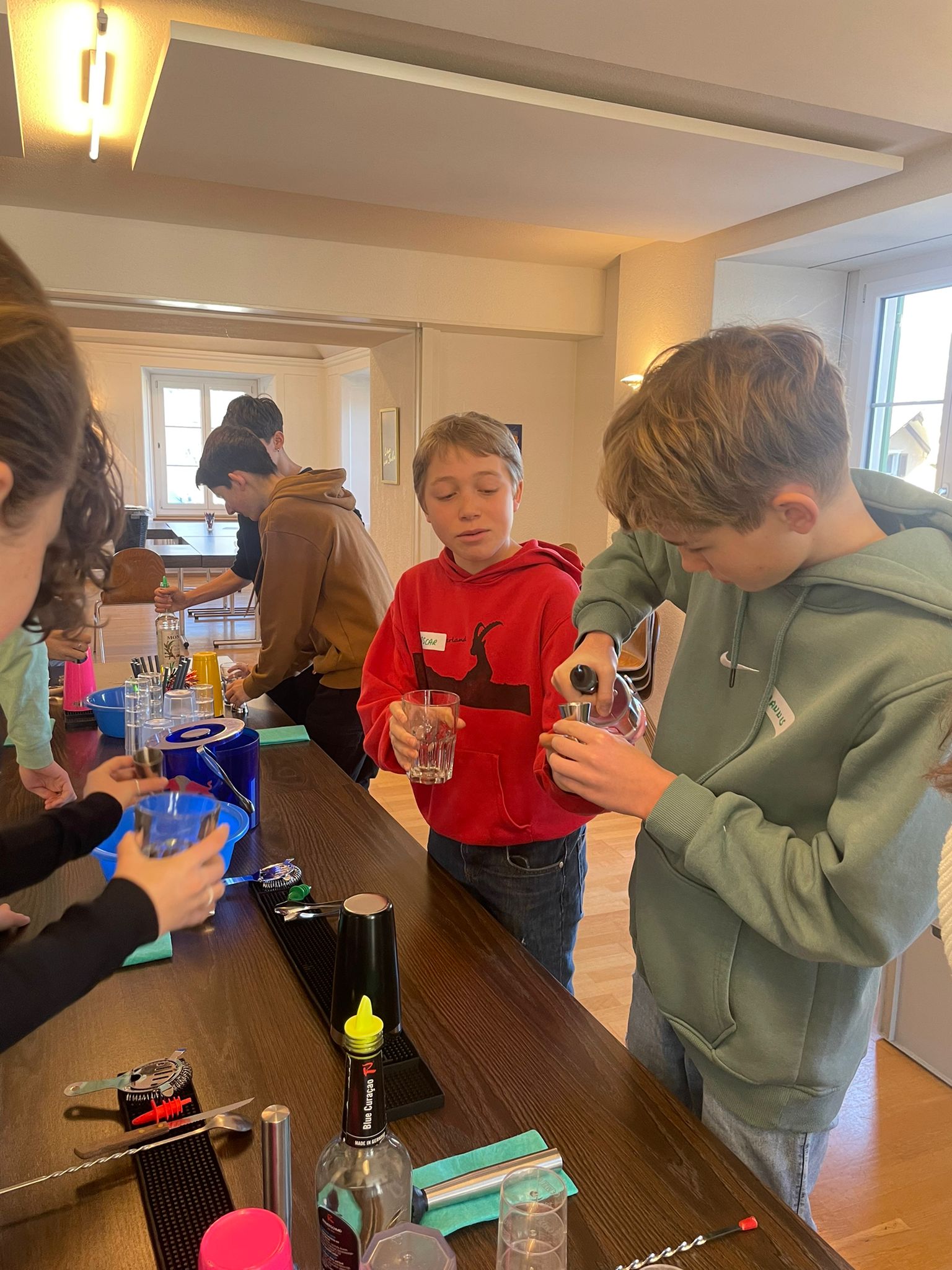 Die Konfis wurden über die Gefahren von Suchtmitteln geschult und unter fachlicher Anleitung von Vinzenz Stipper lernten sie die Kunst des Shakens und Mixens von alkoholfreien Getränken. Neben viel Knowhow zum Barbetrieb konnten sie mit viel Spass eigene Cocktails entwickeln. Diese werden nach dem Jugend-Gottesdienst vom 16. Februar 2024 anlässlich des Apéros serviert.