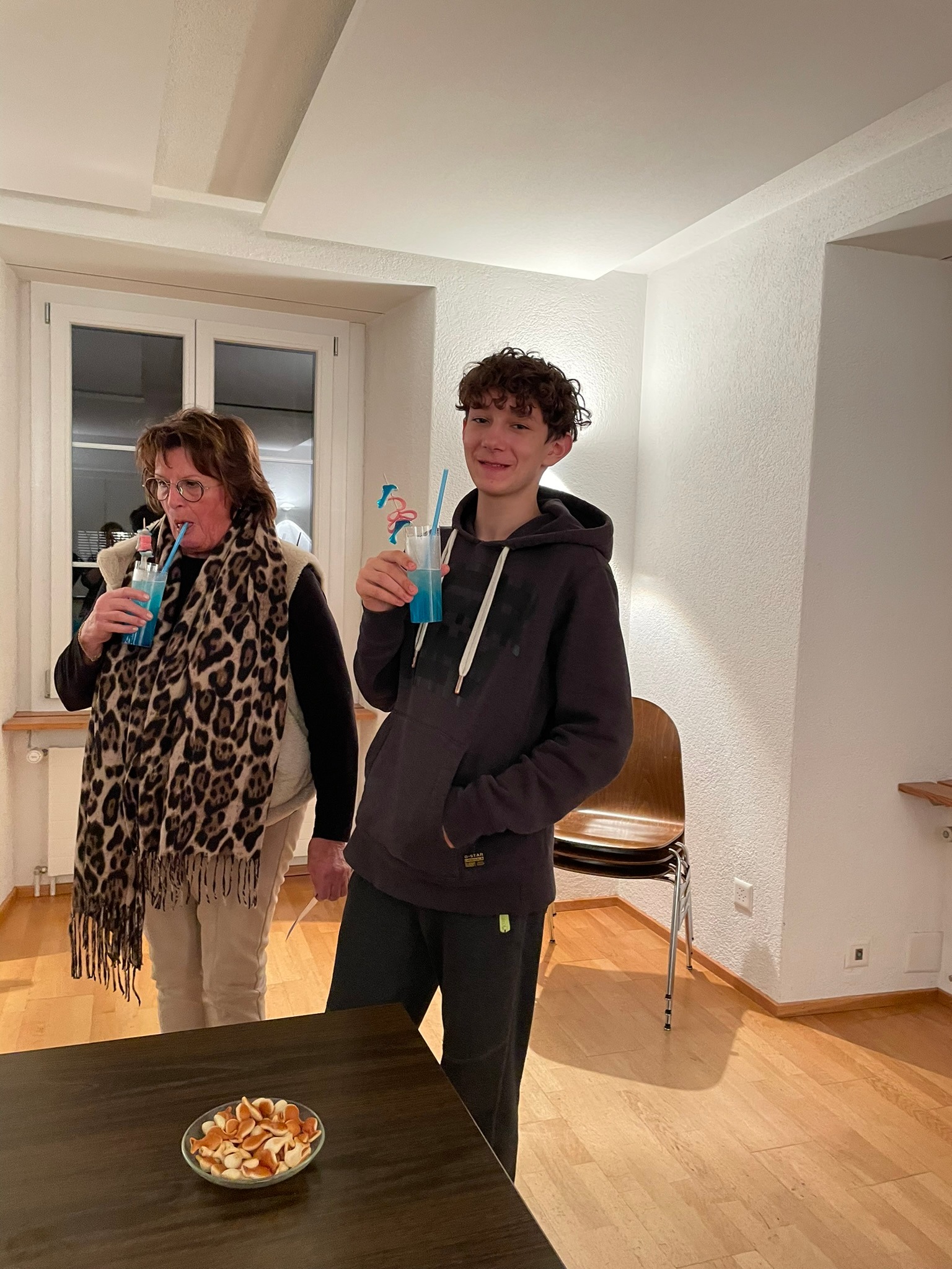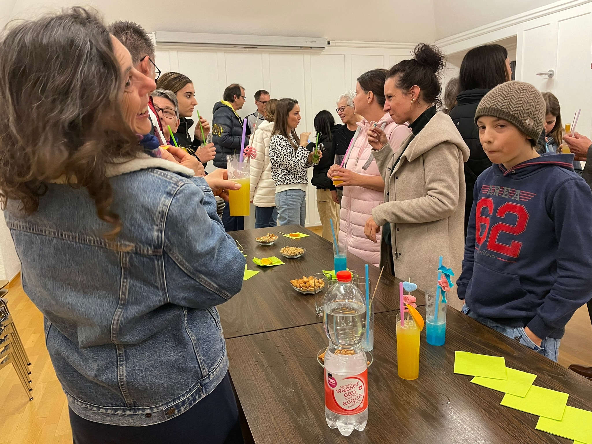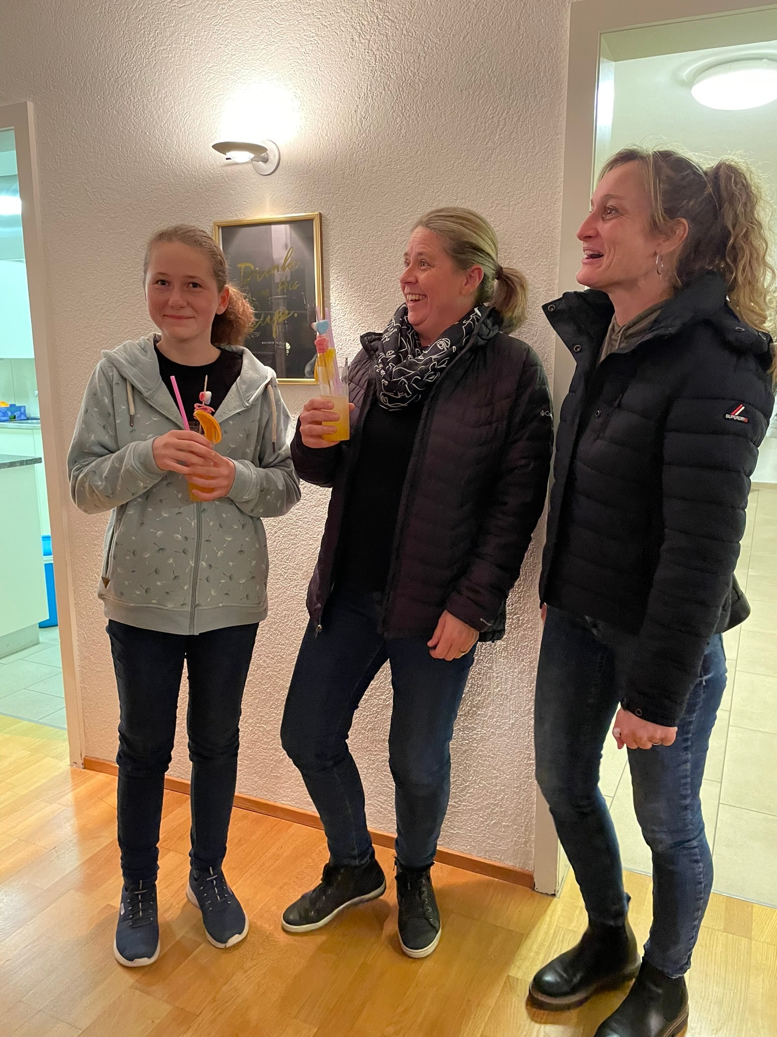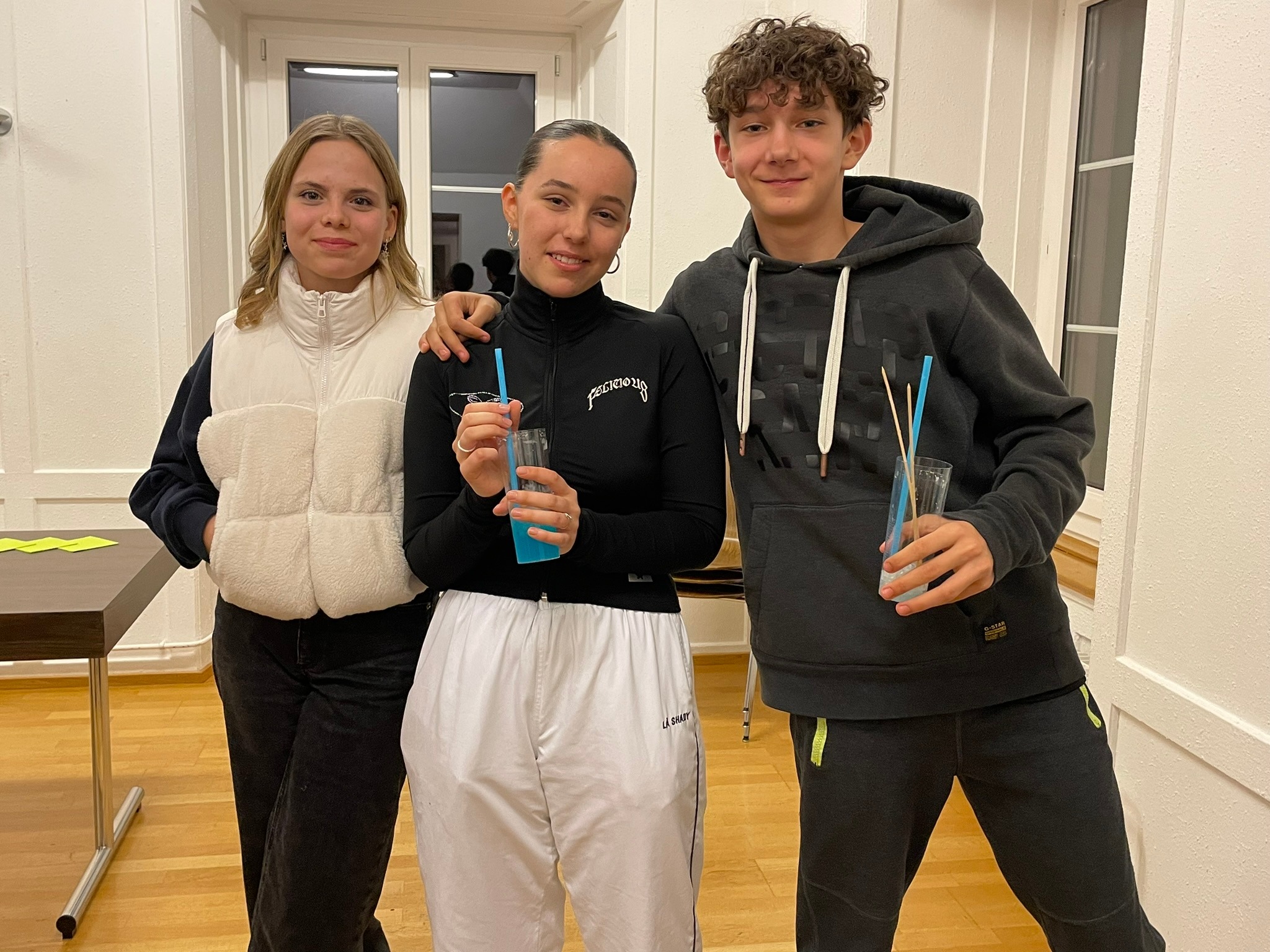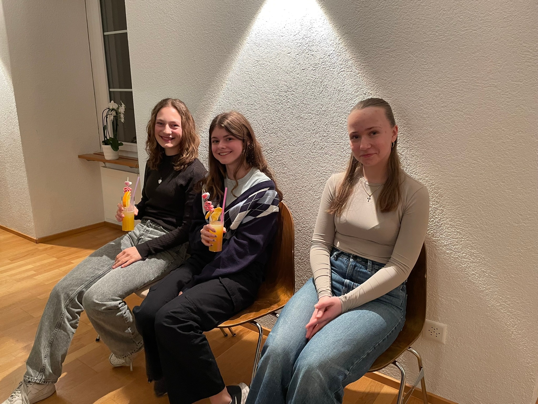 Nach dem Gottesdienst wurden alle zum Apéro ins Kirchgemeindehaus eingeladen. Die aufgetischten Cocktails lernten die Jugendlichen anlässlich des Projekttages Projekttag Blue Cocktail Bar zu mixen. Mit Unterstützung von Tina Graf-Camichel wurde ein farbenfroher, süsser Apéro aufgetischt.
