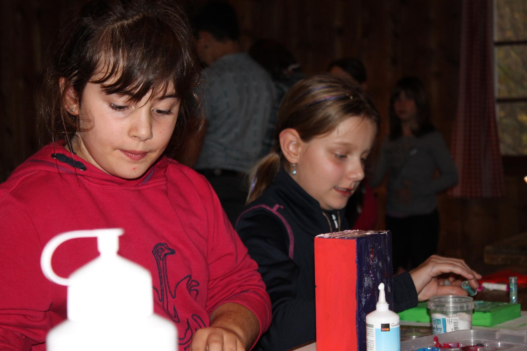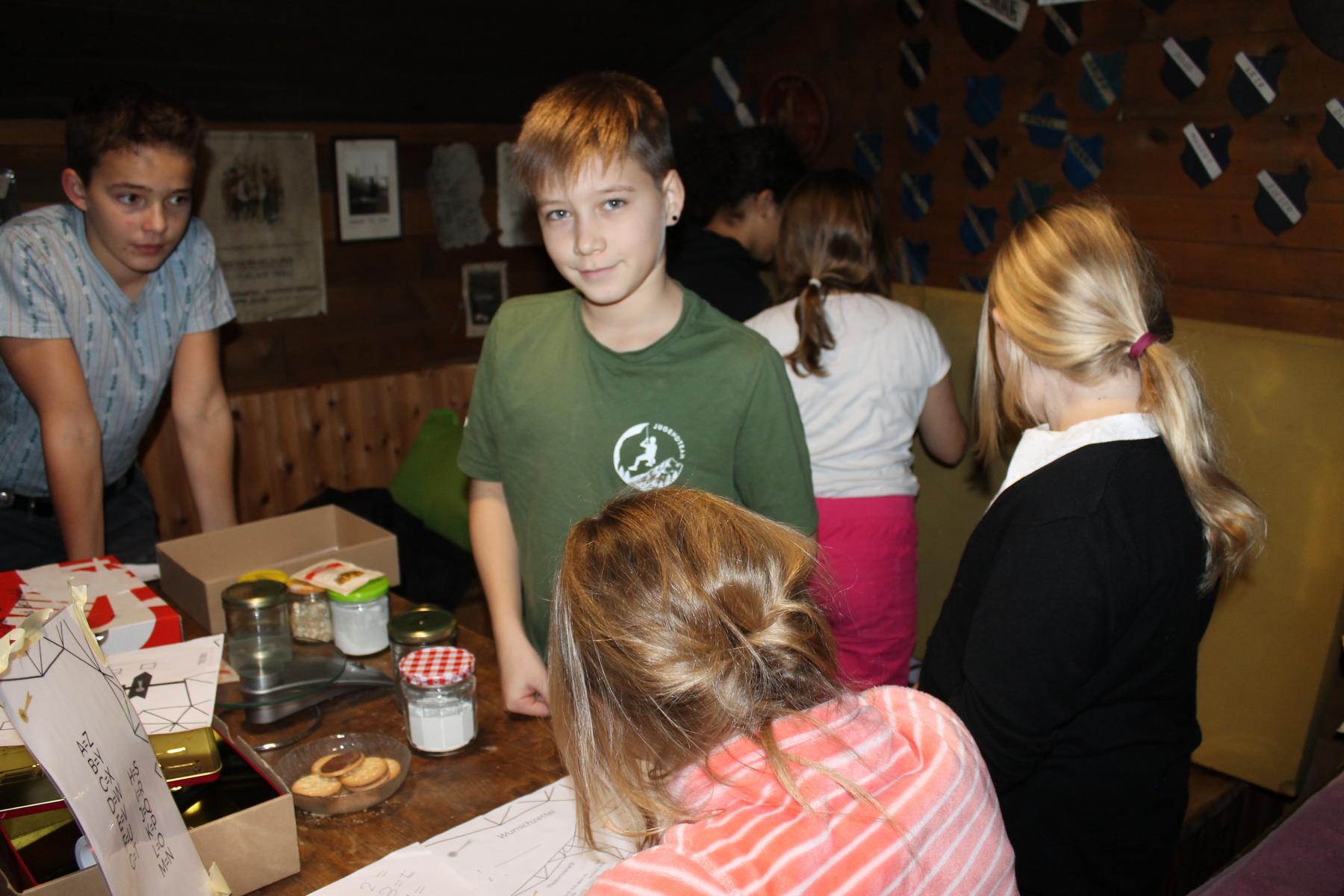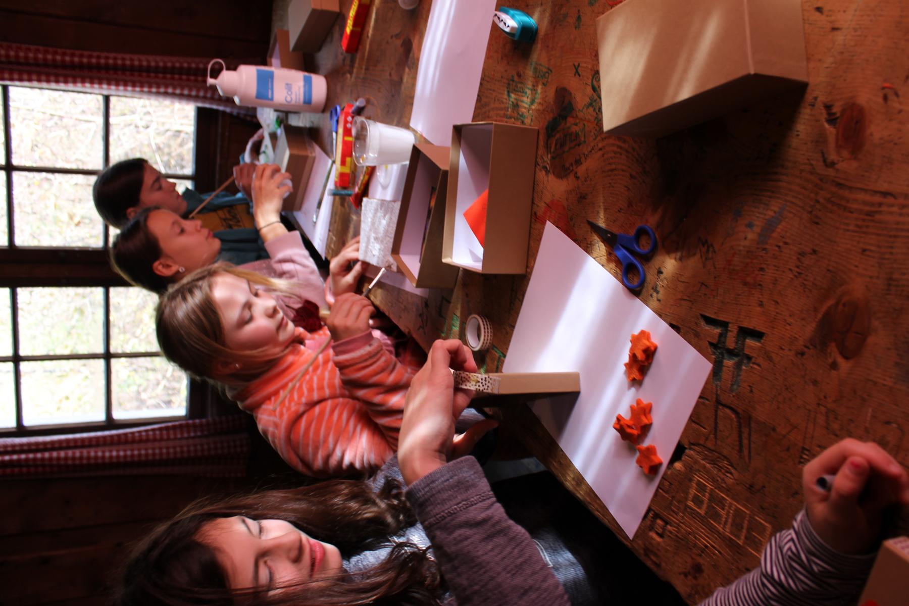 Auf den Fotos sind Kinder zu sehen, die eine Schächtelchen verzieren, in dem sie Kostbarkeiten sammeln konnten, die sie durch die kommende Adventszeit aber auch darüber hinaus begleiten sollen. Die Streichholztürme waren ein Wettbewerb. Das kleine Eselchen musste schwere Lasten tragen, sie so hohe Türme wie möglich bauen oder das Eselchen mit Hölzchen beladen. Gebacken haben wir natürlich auch und die Kinder mussten sich in verschiedenen Gruppen mit einem Escape Game «Weihnachten neu erleben» (5. und 6. Klasse) oder den versteckten Heiligenschein von Engel Max finden (1. – 4. Klasse).