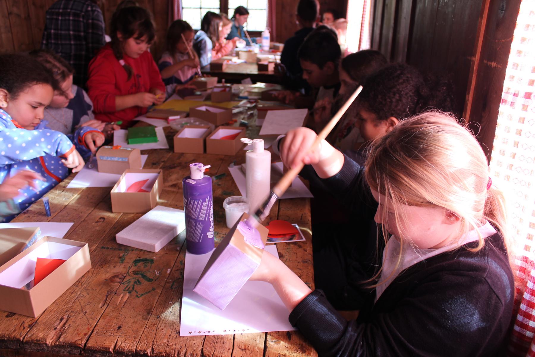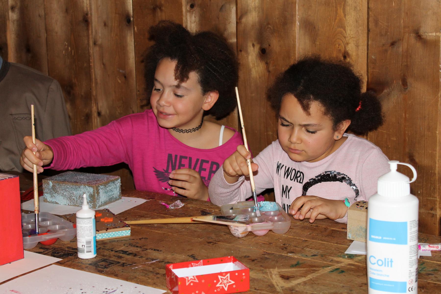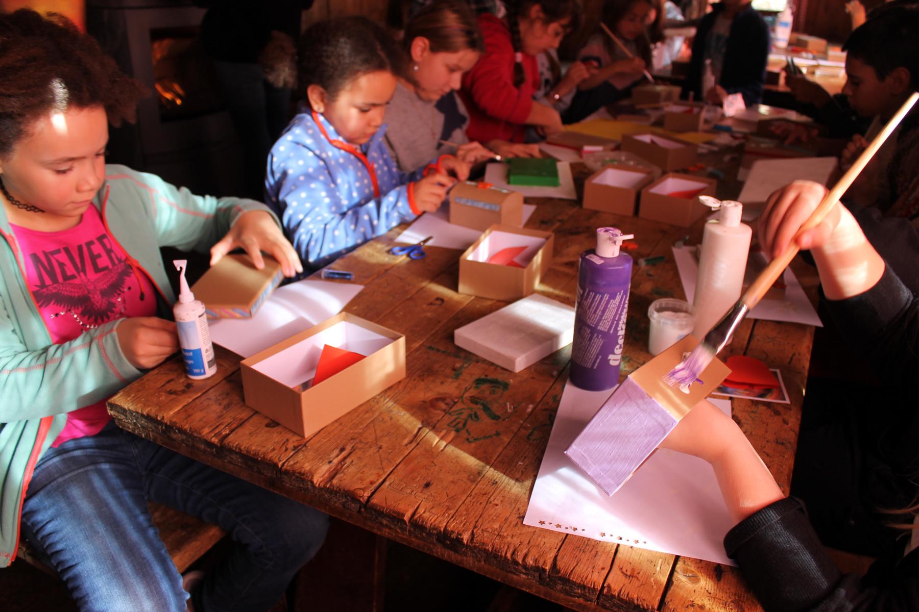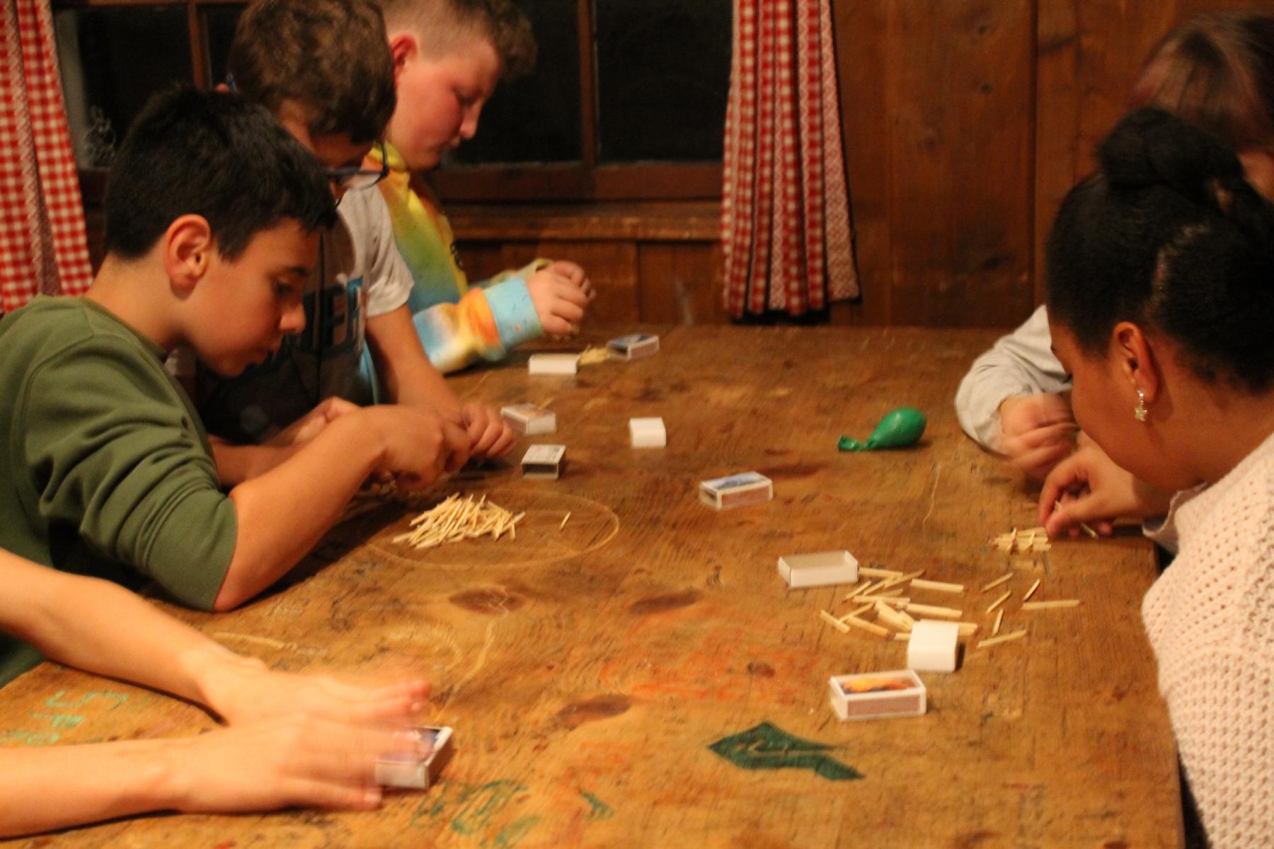 Auf den Fotos sind Kinder zu sehen, die eine Schächtelchen verzieren, in dem sie Kostbarkeiten sammeln konnten, die sie durch die kommende Adventszeit aber auch darüber hinaus begleiten sollen. Die Streichholztürme waren ein Wettbewerb. Das kleine Eselchen musste schwere Lasten tragen, sie so hohe Türme wie möglich bauen oder das Eselchen mit Hölzchen beladen. Gebacken haben wir natürlich auch und die Kinder mussten sich in verschiedenen Gruppen mit einem Escape Game «Weihnachten neu erleben» (5. und 6. Klasse) oder den versteckten Heiligenschein von Engel Max finden (1. – 4. Klasse).