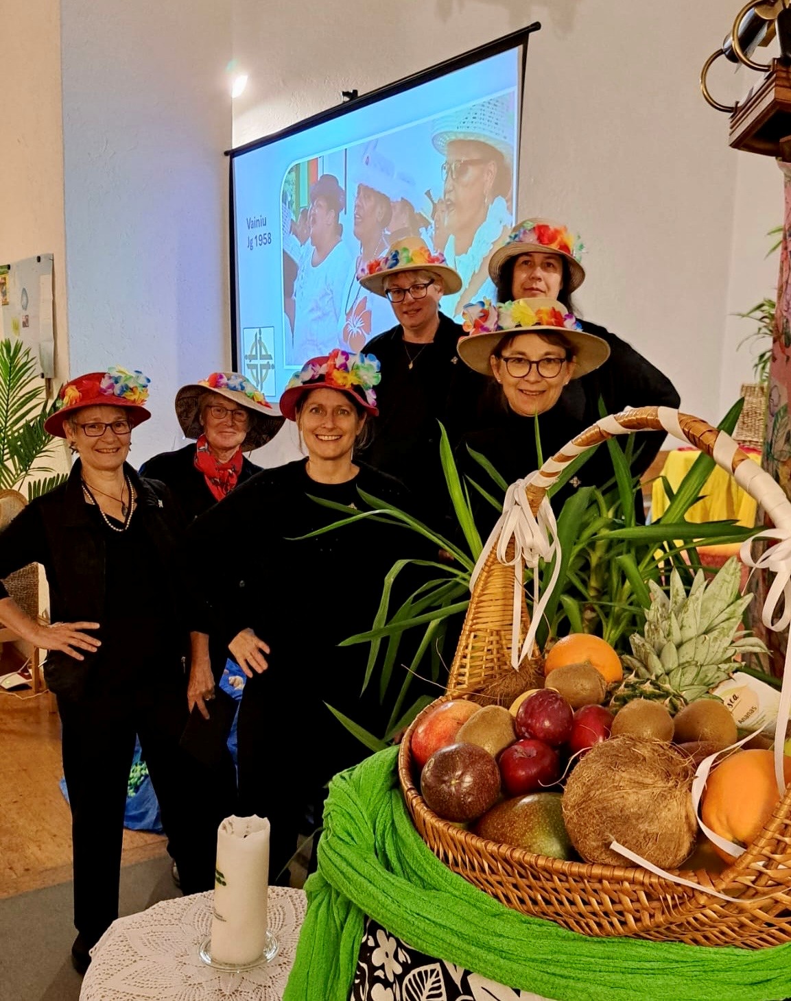 Gesänge, Tänze und Trommelklänge umrahmten den Gottesdienst und brachten uns den kulturellen Reichtum näher. Beim anschliessenden Imbiss genossen wir die Gemeinschaft und kosteten eine feine Süsskartoffelsuppe Tahiti, ein Aitutaki-Kokosnusscake und anderen Köstlichkeiten von den Cook Islands.